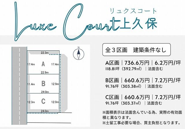 新規土地のご紹介。上久保小学区。 新規分譲地(リュクスコート上久保)のご紹介!建築条件なし。 2026年3月31日まで申し込みの方へ、amazonギフトカード5万円分プレゼント対象となります。 お早めにお問い合せ下さい。✆0176-53-3436 宜しくお願い致します。 記事の更新日:2026/01/07